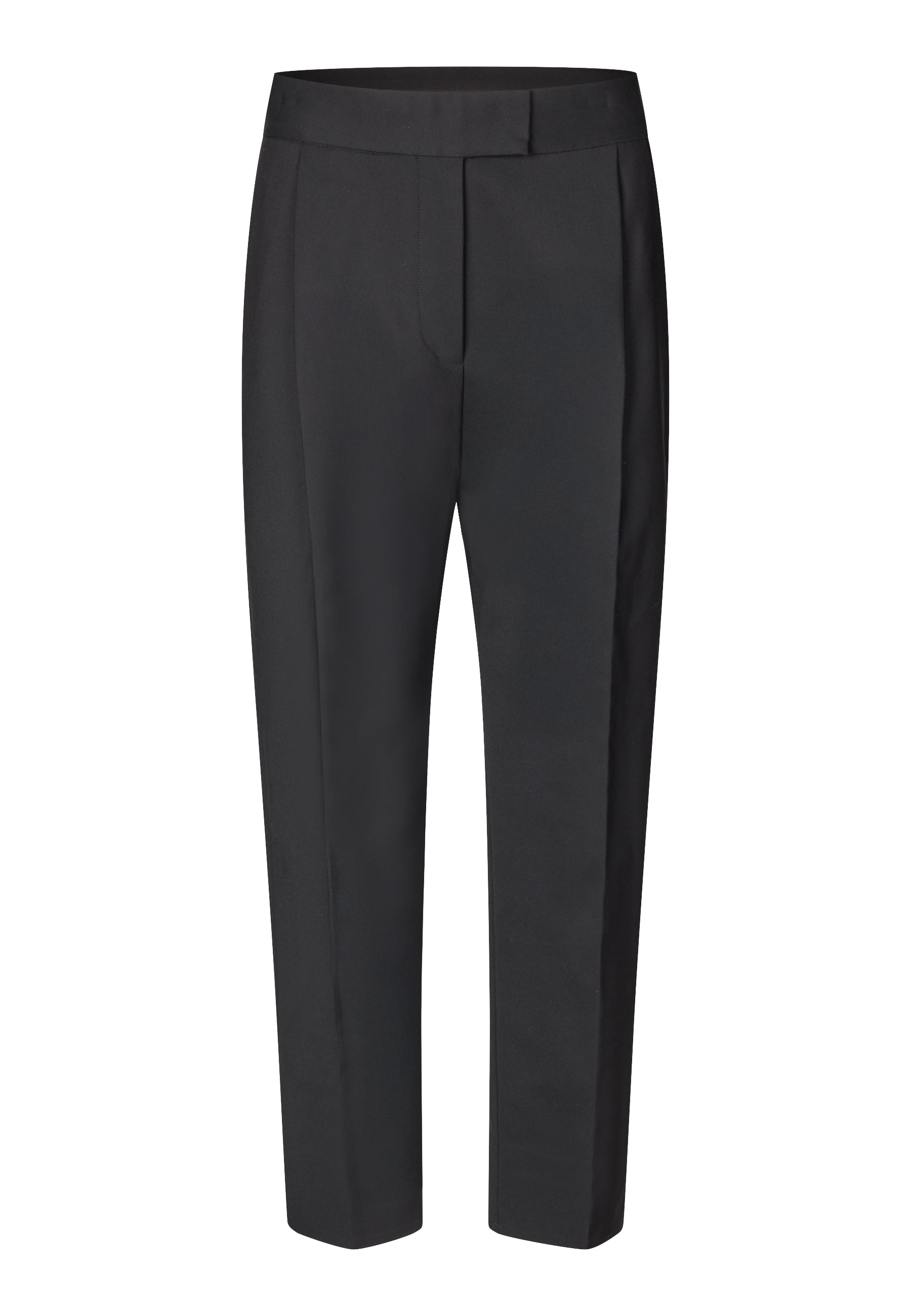 Cool bukser med dybe læg, høj talje, lommer og bred linning.