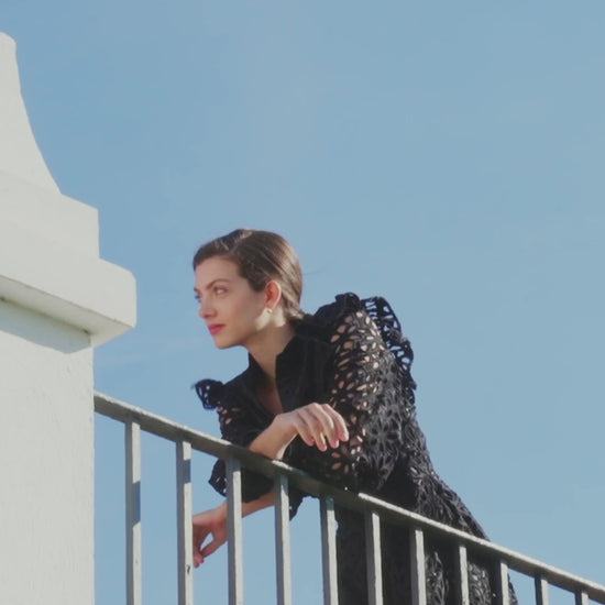 Skøn kjole i smuk blød blonde. Kjolen har overskæring i taljen, stolpelukning med betrukne knapper og skørt med vidde.
