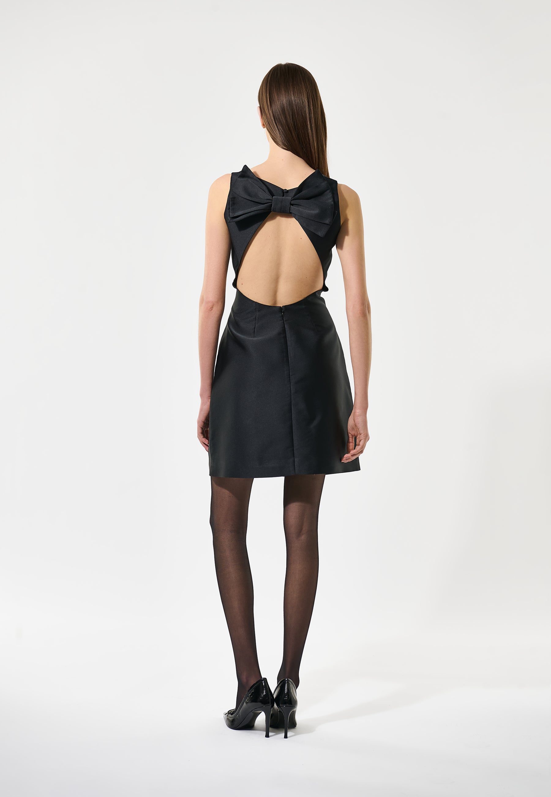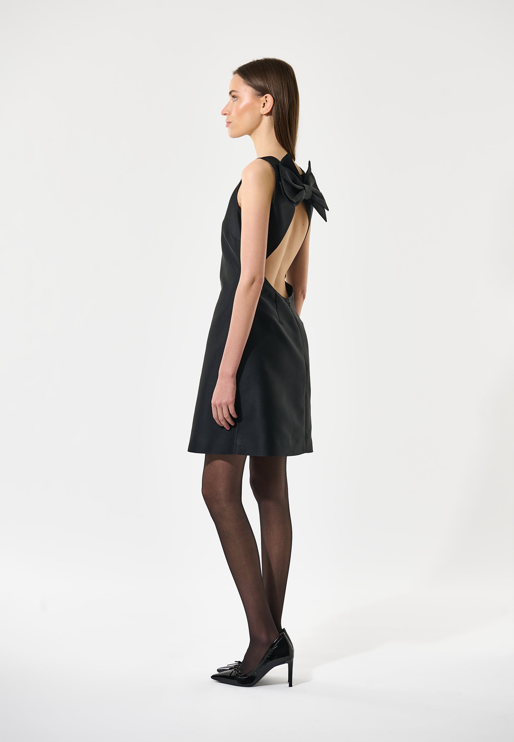Smuk kjole i et eksklusivt 60ér inspireret snit. Kjolen har en dyb v-udskæring, åben ryg med sløjfe detalje og underdel i a-shape.