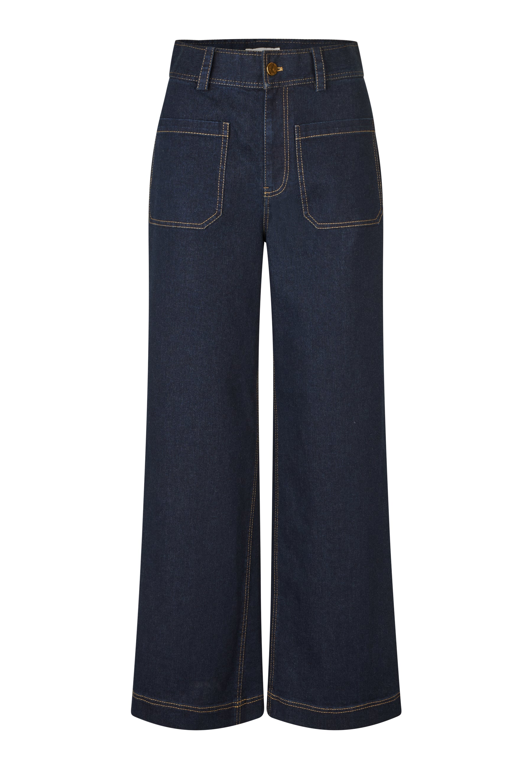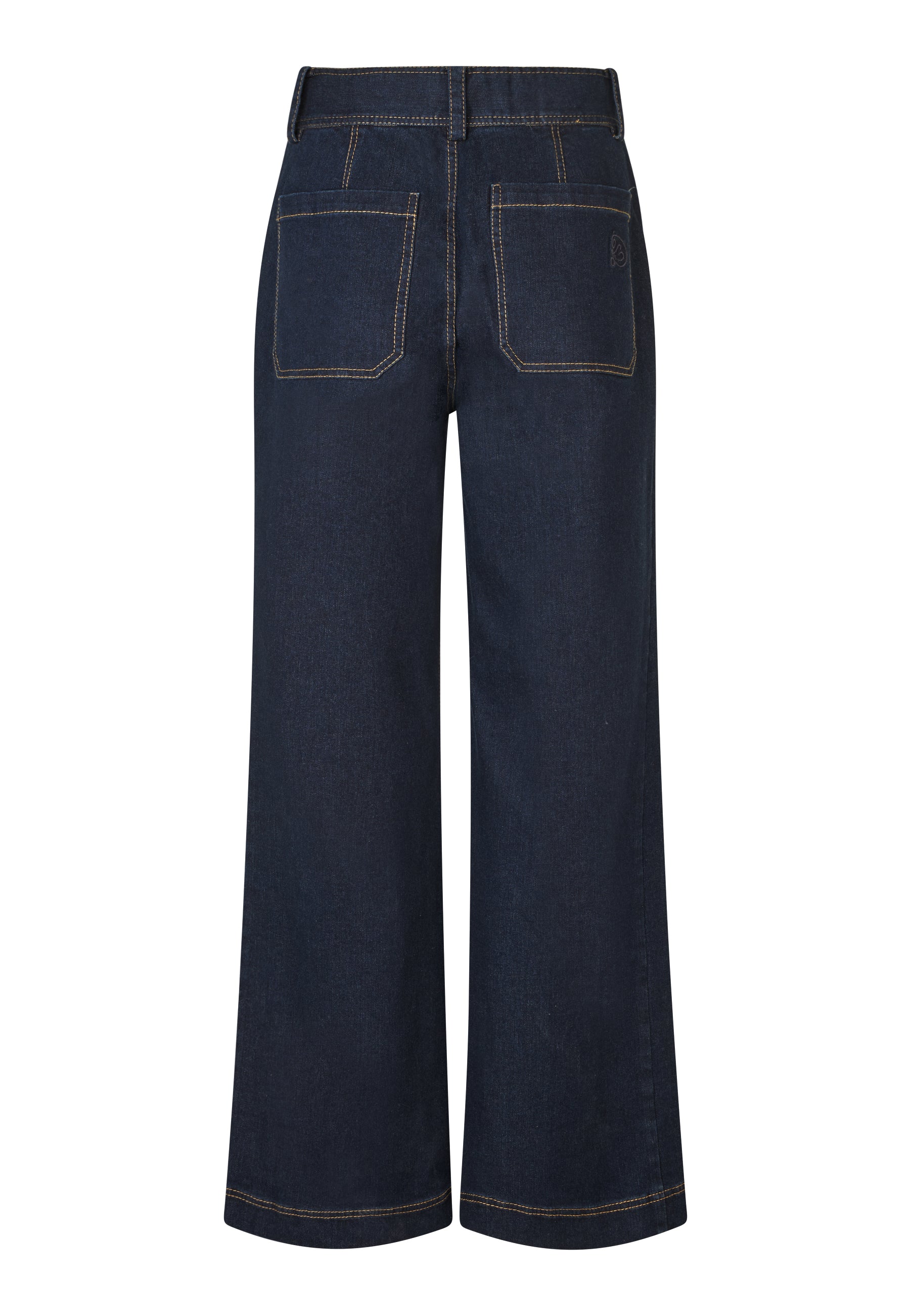 Cool jeans med 70ér inspirerede detaljer, såsom brede lige og påsyede for- og baglommer. Jeans´ne er i den klassiske mørkeblå jeansfarve, med orange stikninger.