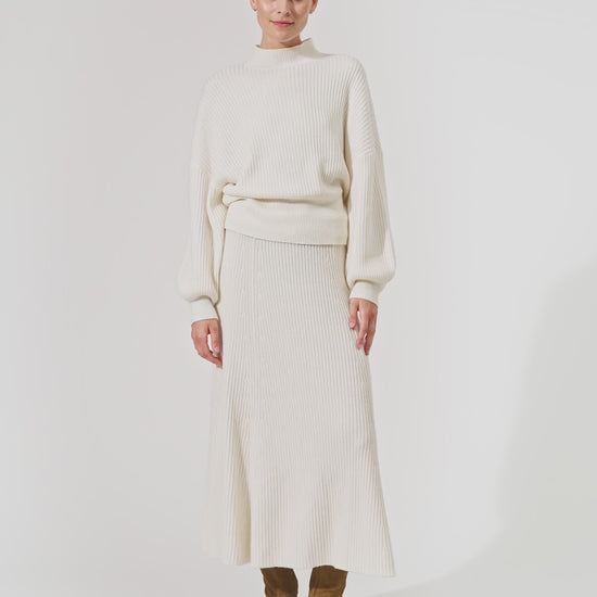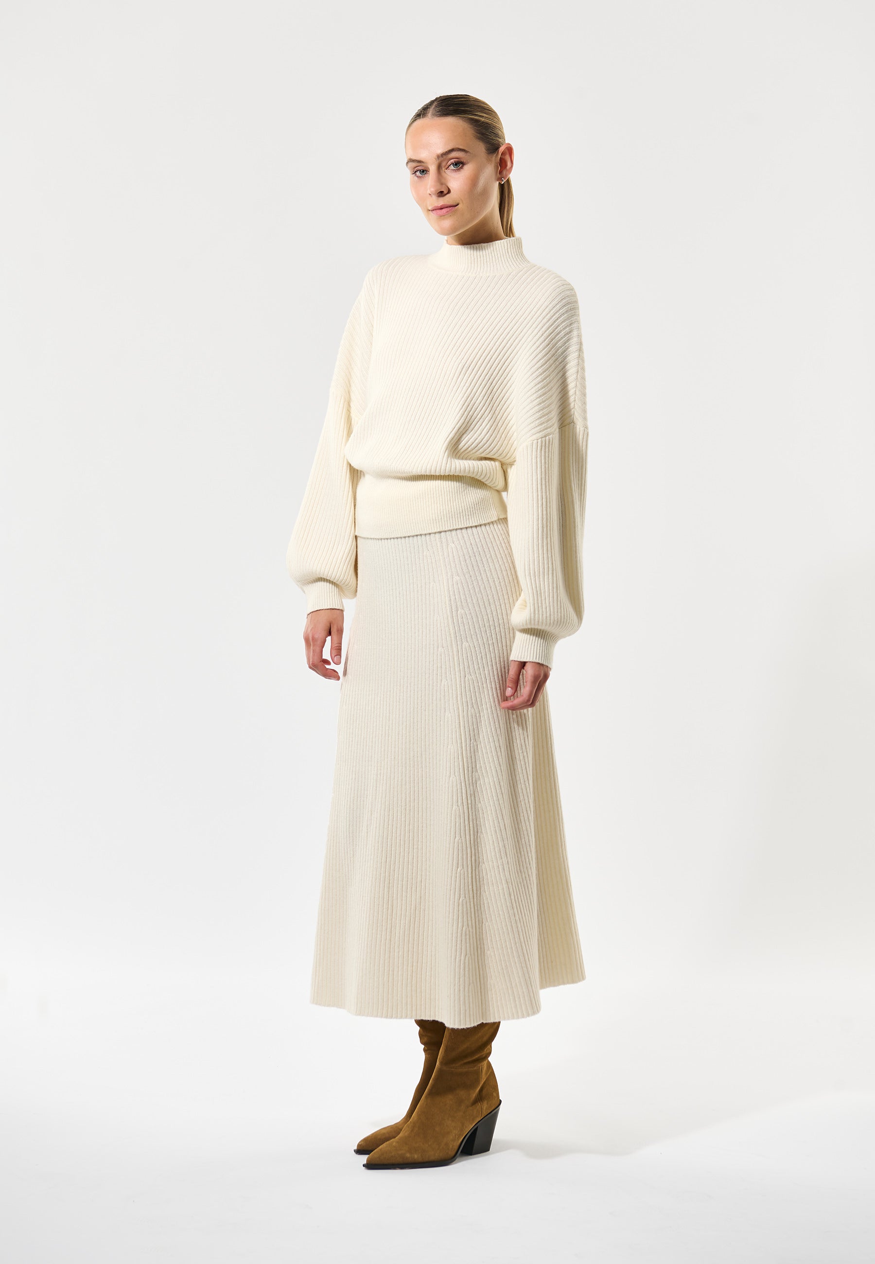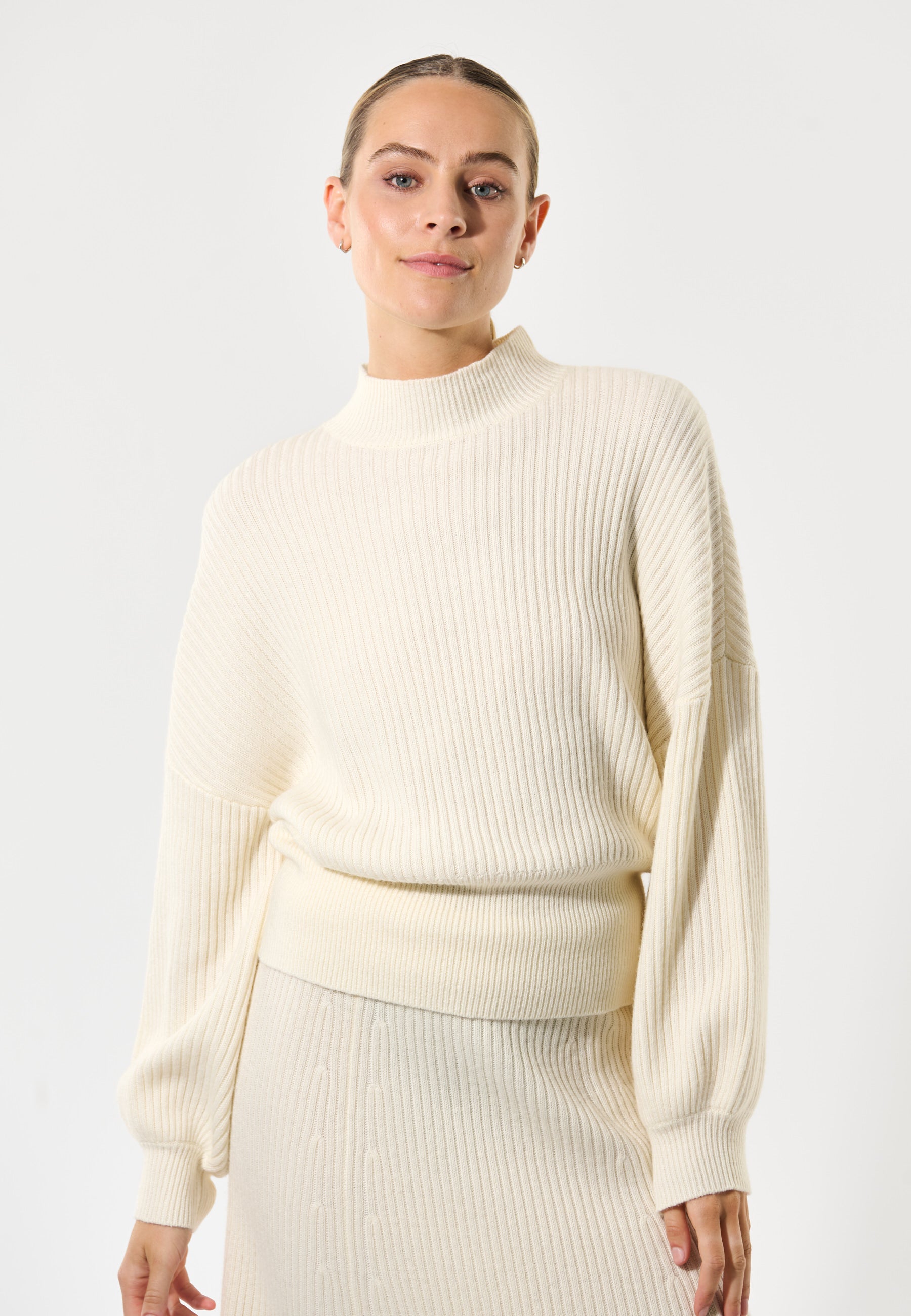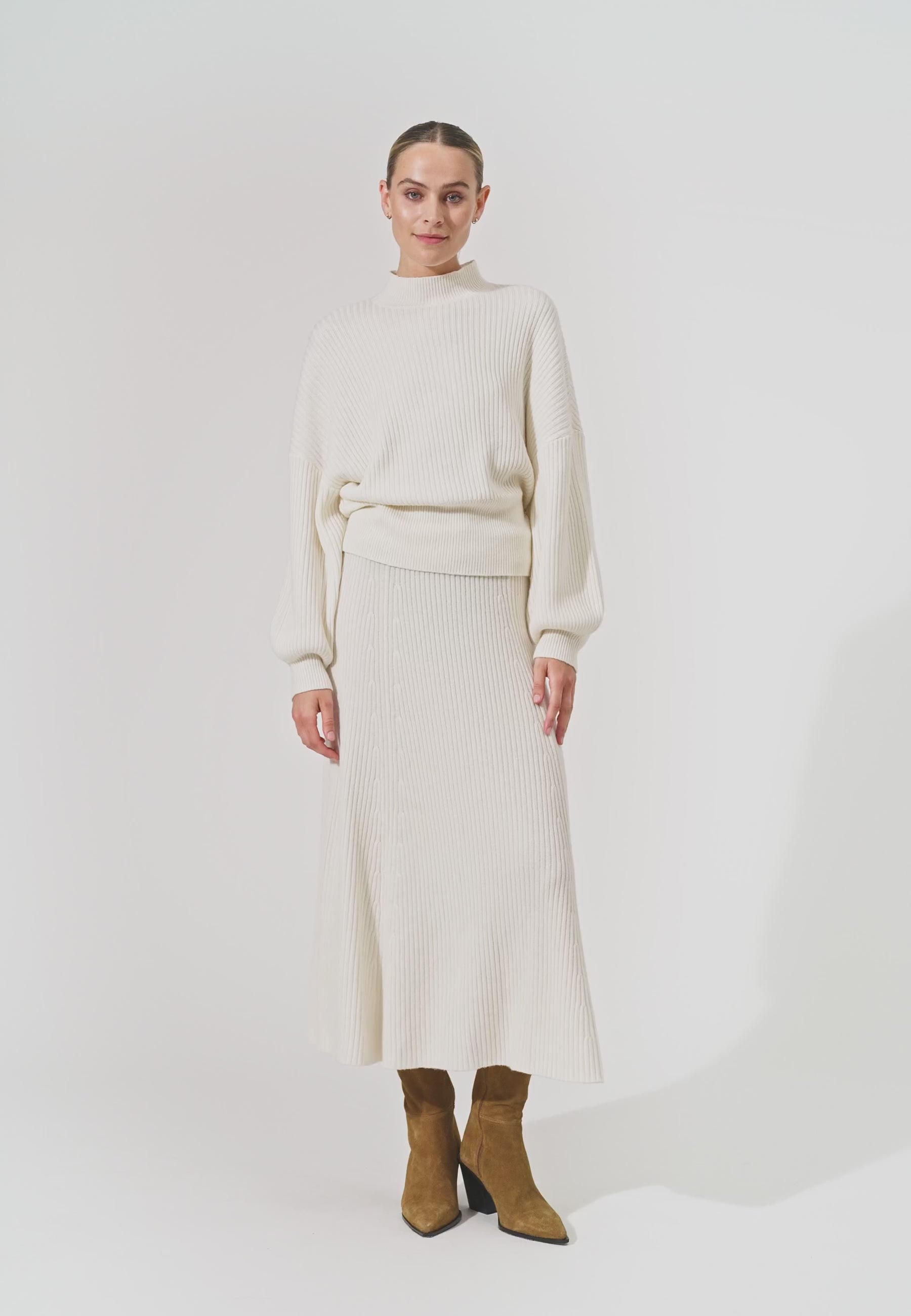 Strikbluse i et bred fit med turtleneck, ærmer med vidde og rib manchet.
