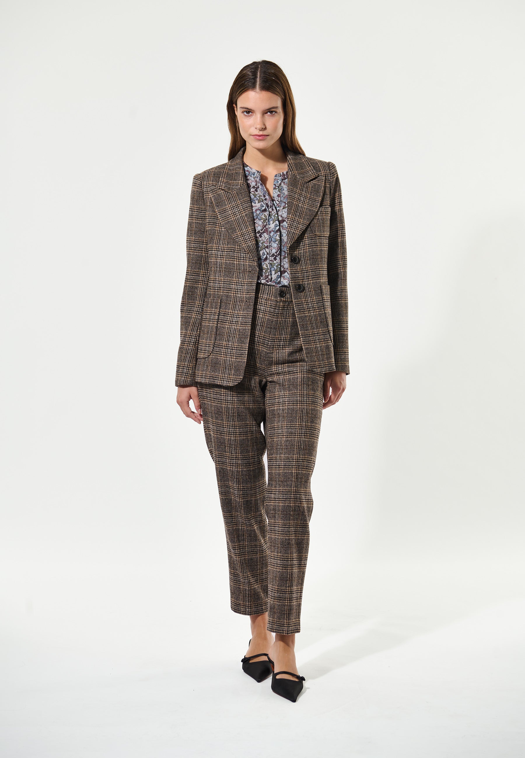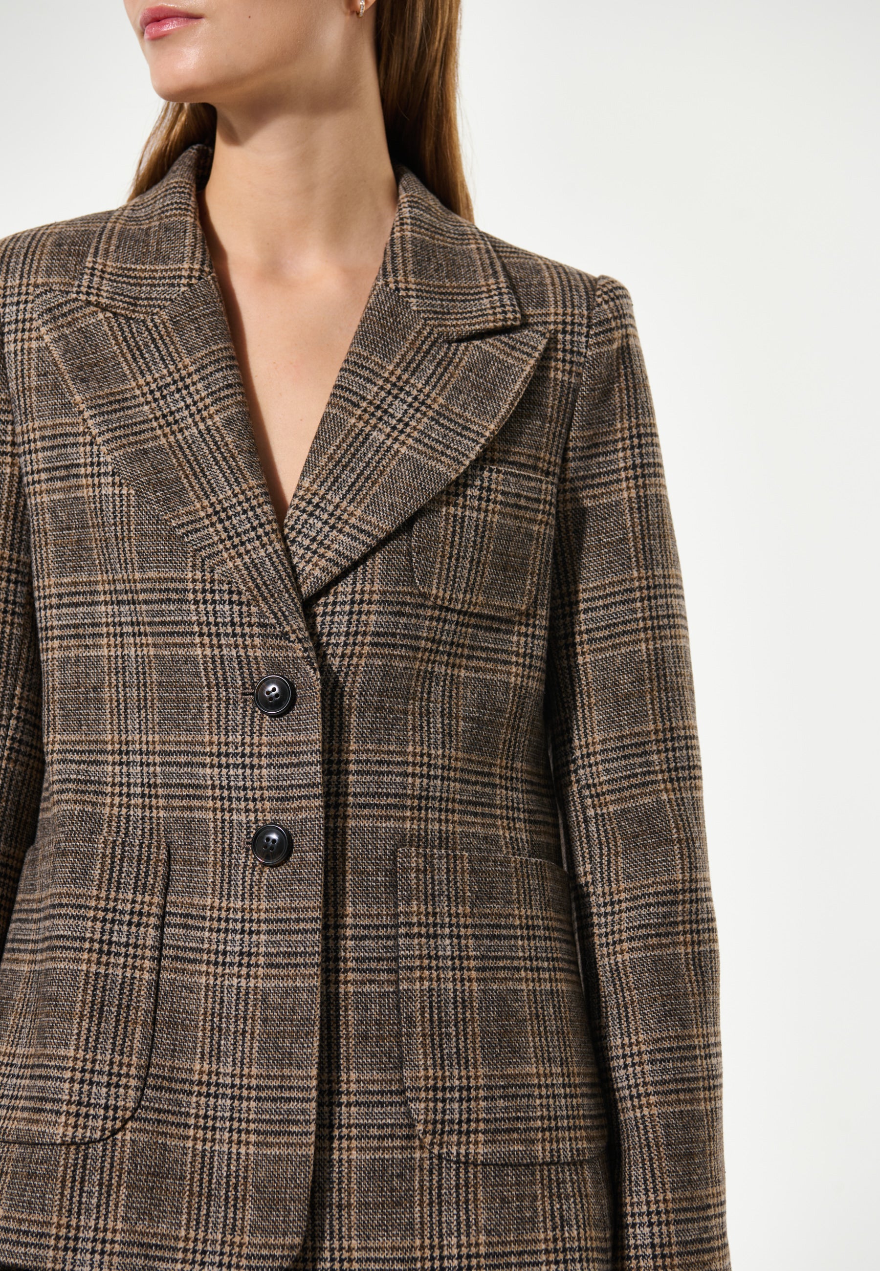 Skøn efterårs blazer i lækker blød uldblanding. Blazeren er i et cool 70´er inspireret look med spids revers og påsyede lommer.